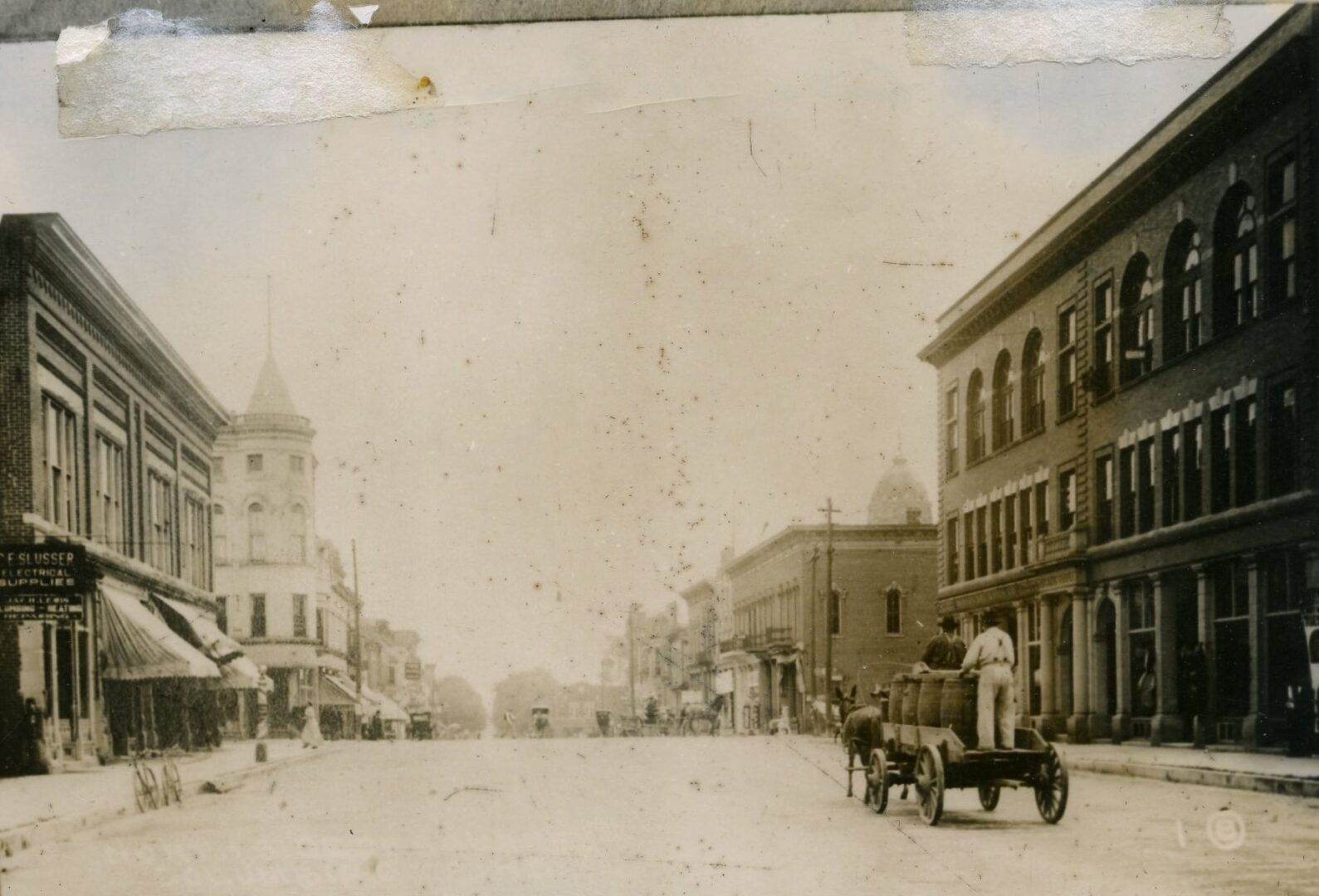 A newspaper reports it came at a cost of $30,000 and was built in 1904 and dedicated the following year. Raupfer was given the west side of the building, and it was here he sold farming implements and machinery. The second floor became the armory for the local National Guards. The third floor became the meeting space for a group called the Modern Woodmen, a fraternal organization focused on providing family life insurance.