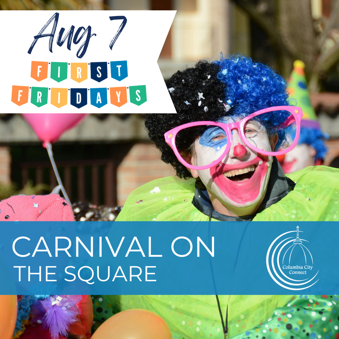Step right up for August’s First Fridays: Carnival on the Square. Downtown transforms into a lively carnival experience filled with excitement for all ages!