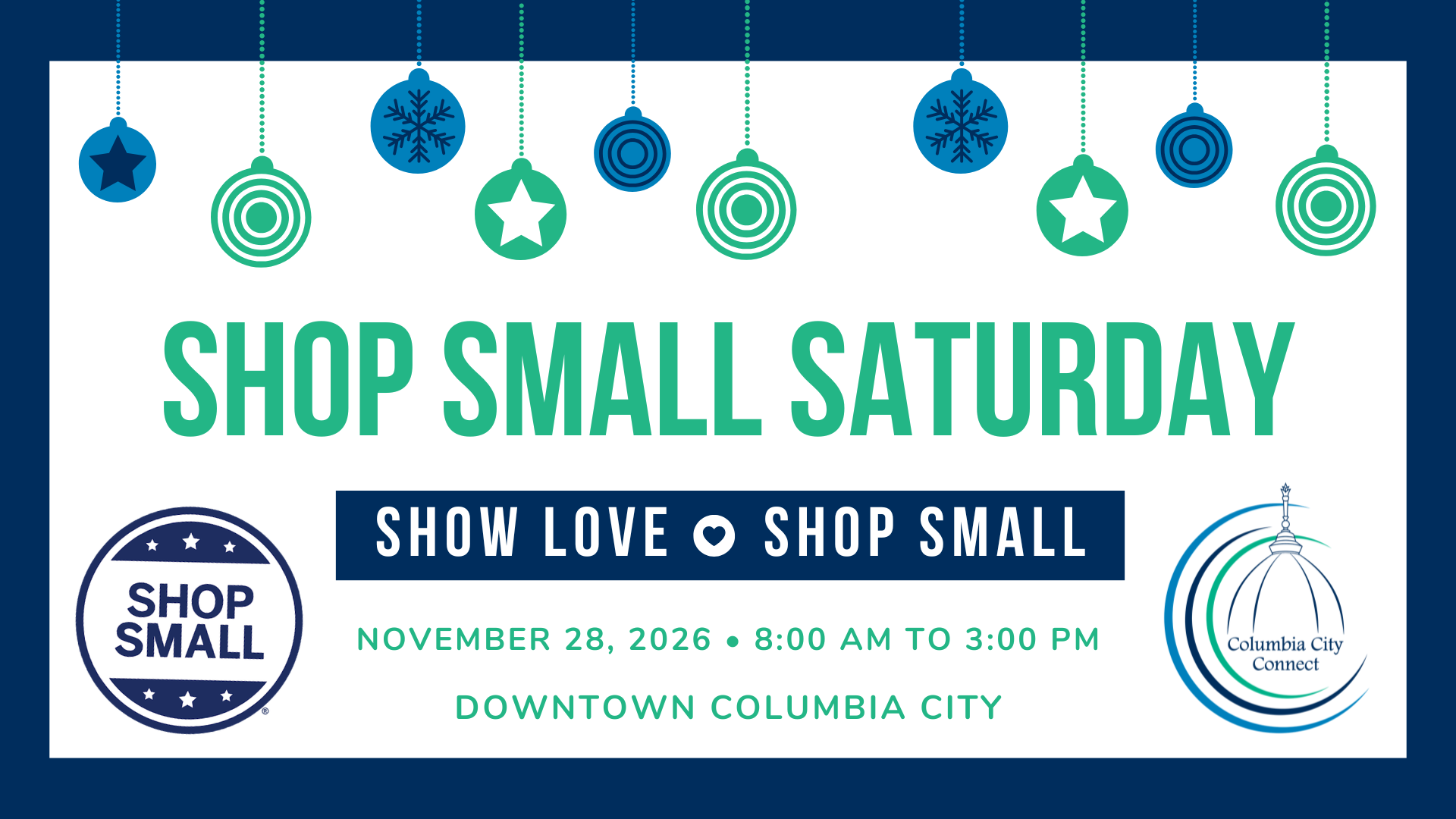 Join us in downtown Columbia City for Shop Small Saturday. A day dedicated to celebrating and supporting the amazing small businesses that make our community thrive!