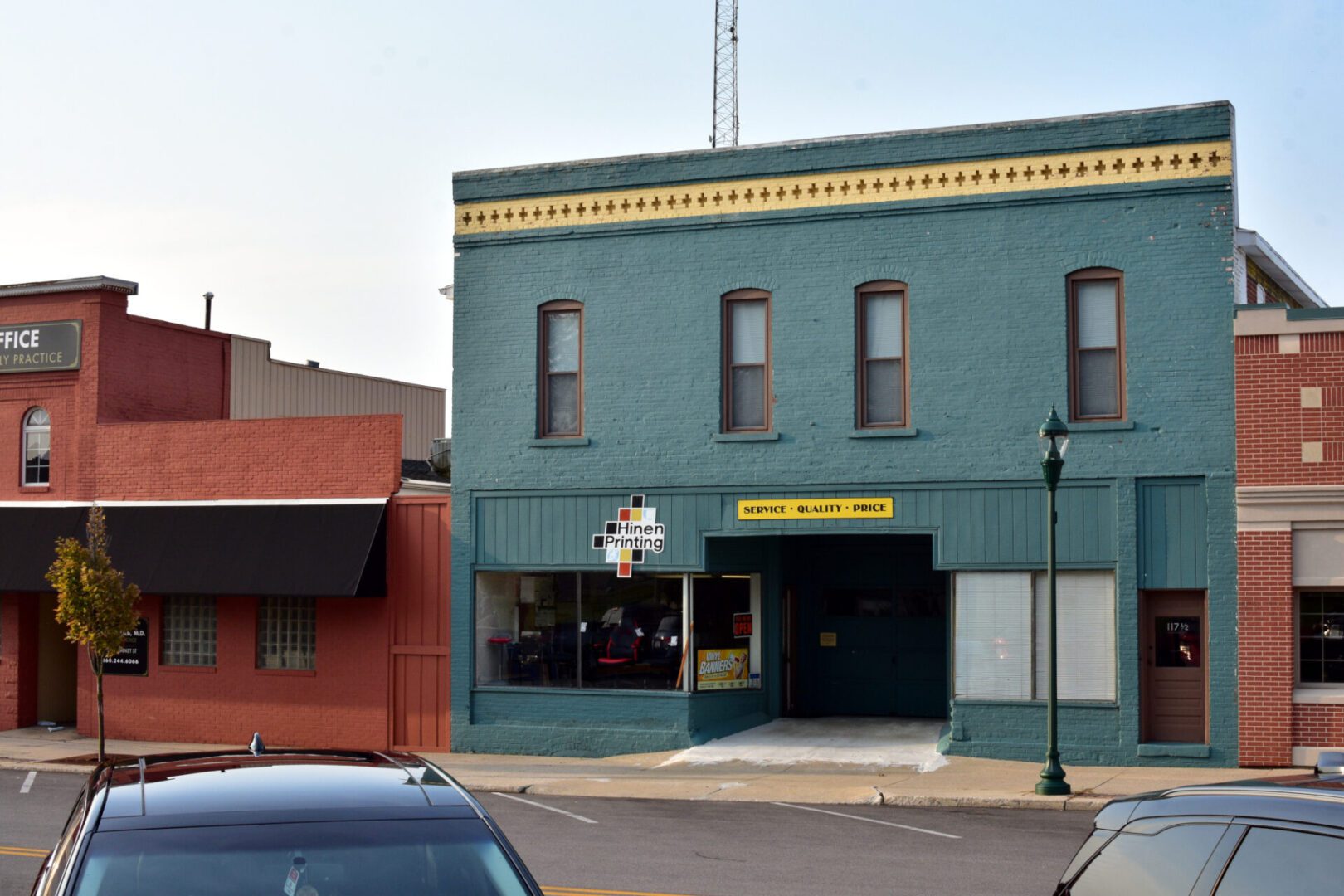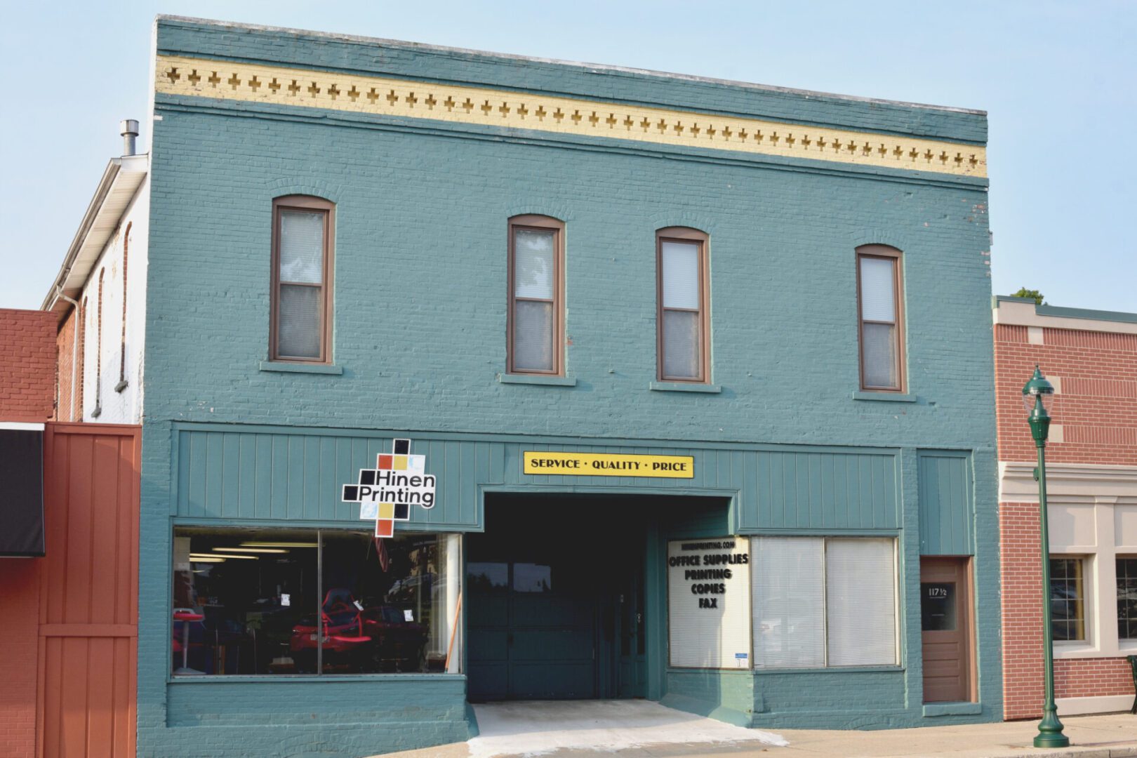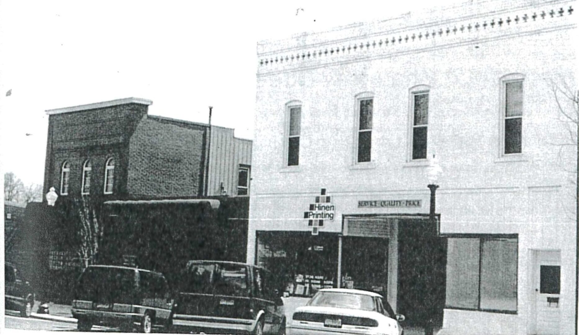 By 1927, it had become the Van Curen & Van Curen Garage. Then it became the Whitley County Farm Bureau Co-Op, and it remained in this building for a number of years. From 1977 to 1988 Auer & Davidson Realtors kept its offices here. Hinen Printing has called this building home since 1989.