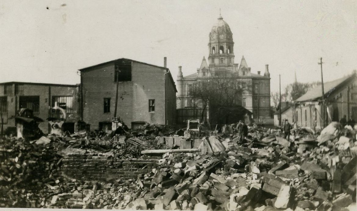The Market Street block across from the courthouse has undergone quite a few changes, due in significant part to a large fire in 1921.