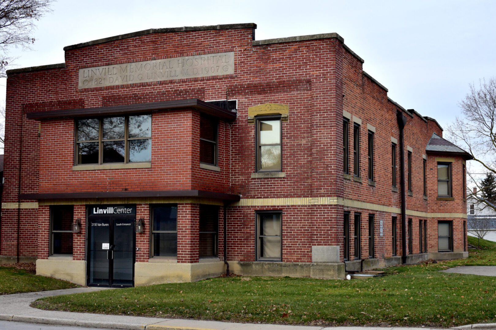 The address at 215 E. Van Buren was once the home of Dr. David G. Linvill, and was originally built in 1879. It was a four-story home with some 23 rooms. Dr. Benjamin Linvill, his son, purchased the home after the death of his mother Martha Jane (Myers) Linvill. In 1929, he tore down the home, leaving behind its foundation and one room, which later become the O.B. room. In its place he built a hospital which was named the Linvill Memorial Hospital, which he dedicated to his parents. It opened its doors in May of 1930.