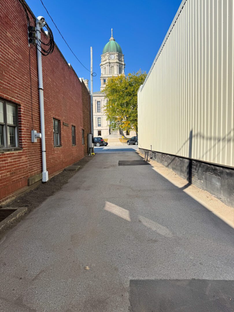 The other project involved the alleyway between Olivia Hinen – State Farm and Bloom Gates, Shipman & Whiteleather LLP. Over the summer, this area had become filled with wildflowers and weeds. While the blooms added charm during the warmer months, it was time for a seasonal refresh. The volunteers carefully cleared out the overgrowth and left the alley spotless, creating a tidy and inviting space for the fall season.