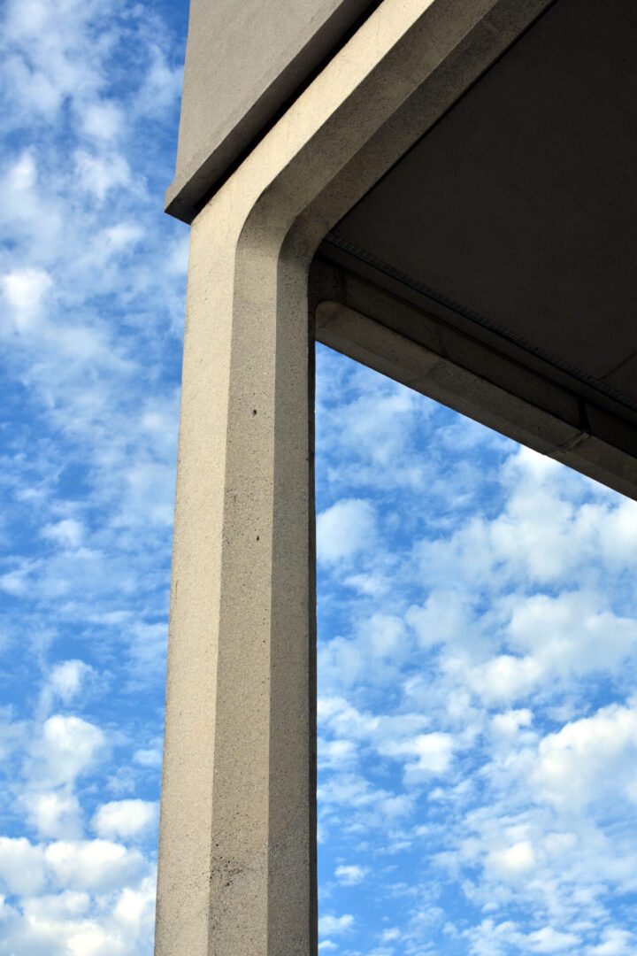 Even though the style lacks scrollwork, flutes, pediments, and other decorations seen on older downtown buildings, the building has clean, gently curving lines to its columns and form that give it more than simply structure.